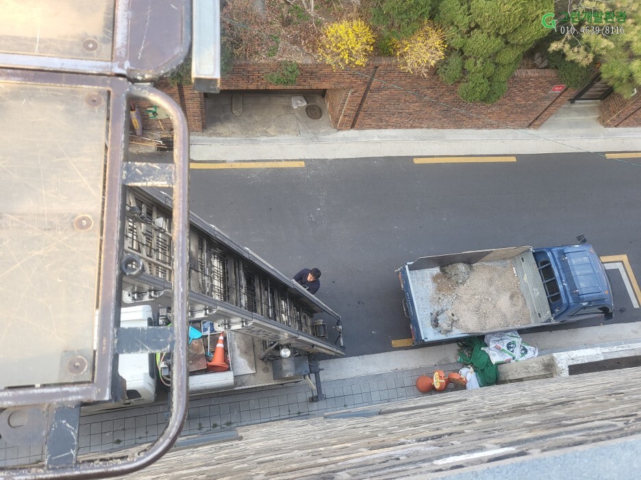 사다리차를 세울 수 있는 곳이라 다행이었다. 금지된 경우 하나씩 분해하여 트럭에 실어야 합니다.